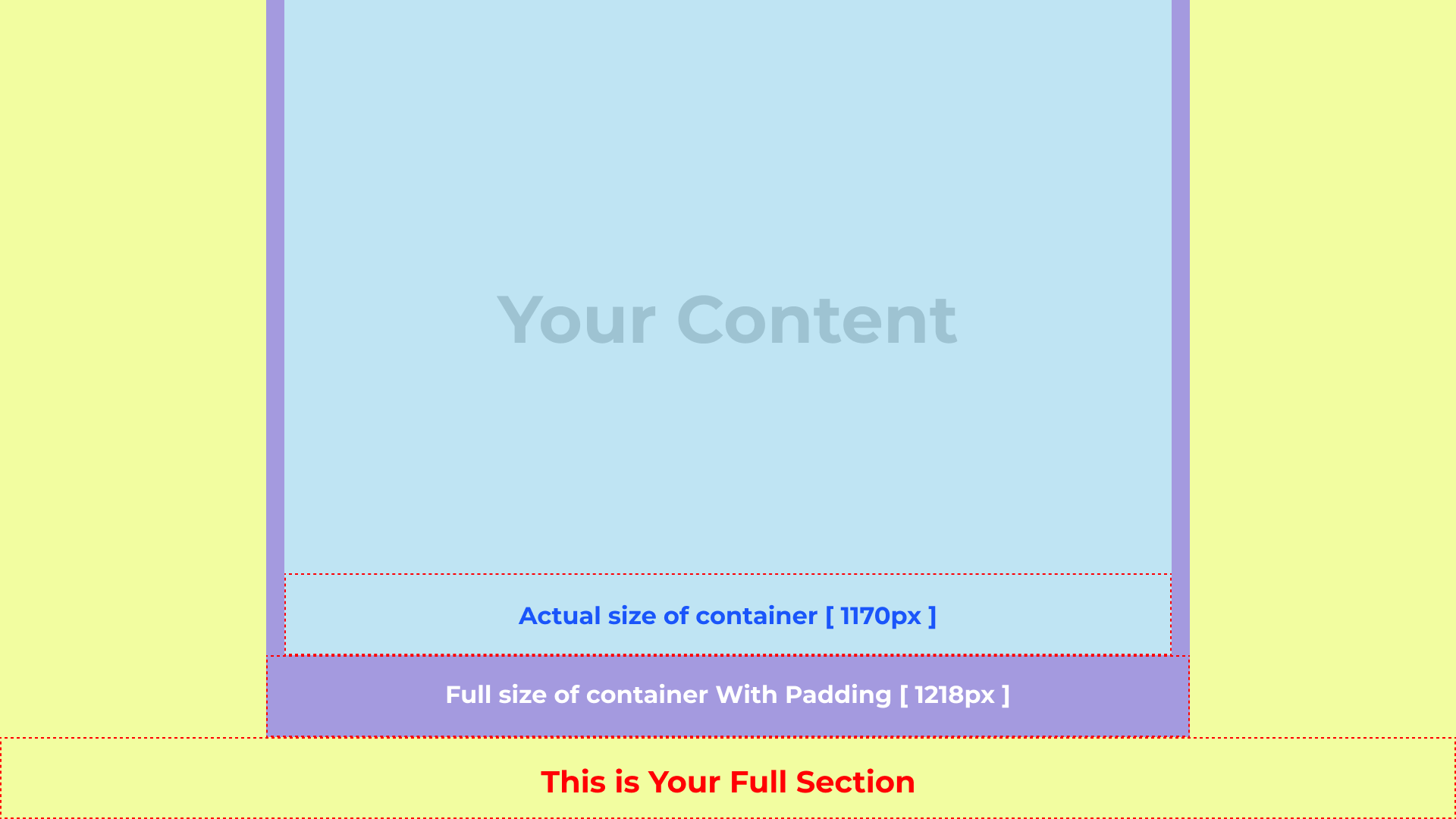 - We have set a default padding of 1.5rem (24px) on the left & right sides of the container[ Content Left/Right Edge Spacing ].